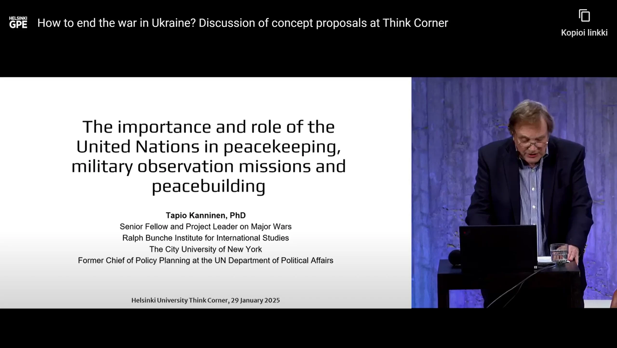 Videos on solving the Ukraine-Russia war How to end the war in Ukraine? Discussion of concept proposals at Think Corner of the University of Helsinki in January 2025. President of GCINET Tapio Kanninen´s part of the discussion